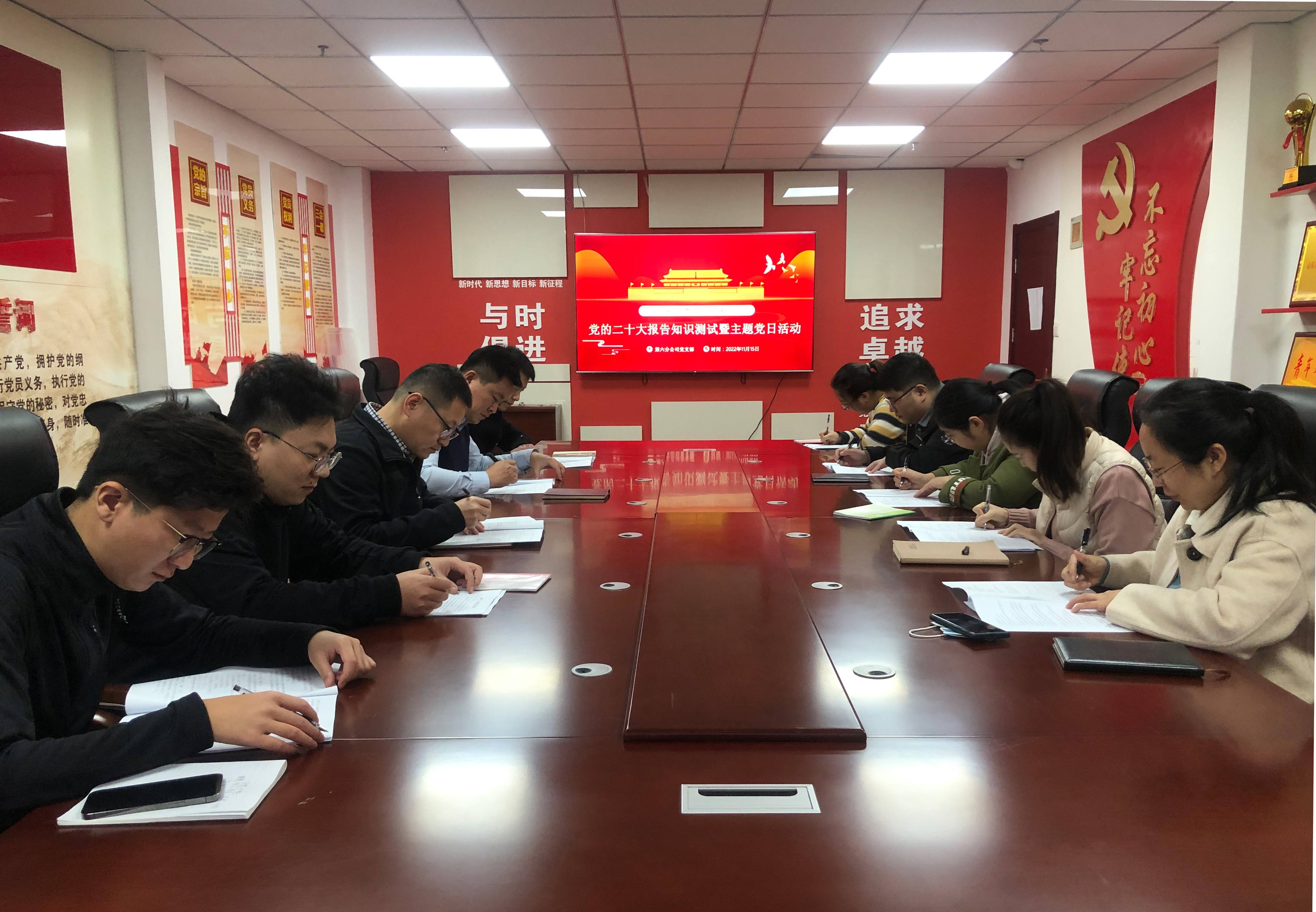 为深入学习贯彻党的二十大精神,推动第六分公司党员干部职工深刻领会二十大精神实质,11月15日,第六分公司党支部组织开展党的二十大报告知识测试暨主题党日活动。