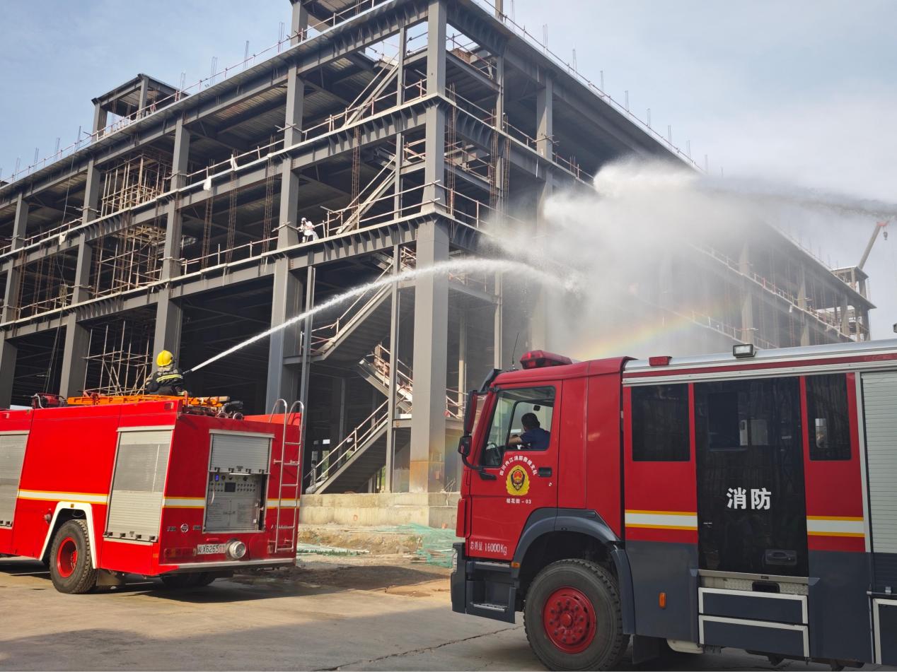 近日,由第五分公司承建的资中县乡村振兴产业示范园区基础设施建设项目(一期)项目部联合参建单位山东高速德建集团有限公司在项目现场开展消防、防高坠应急演练。四川省资中县委常委、常务副县长许凤,副县长洪川,县应急管理局局长赵军,县住房和城乡建设局局长蒋勇军莅临指导,资中县消防救援大队,县财政局(国资委),资中县兴资集团等单位现场观摩。
