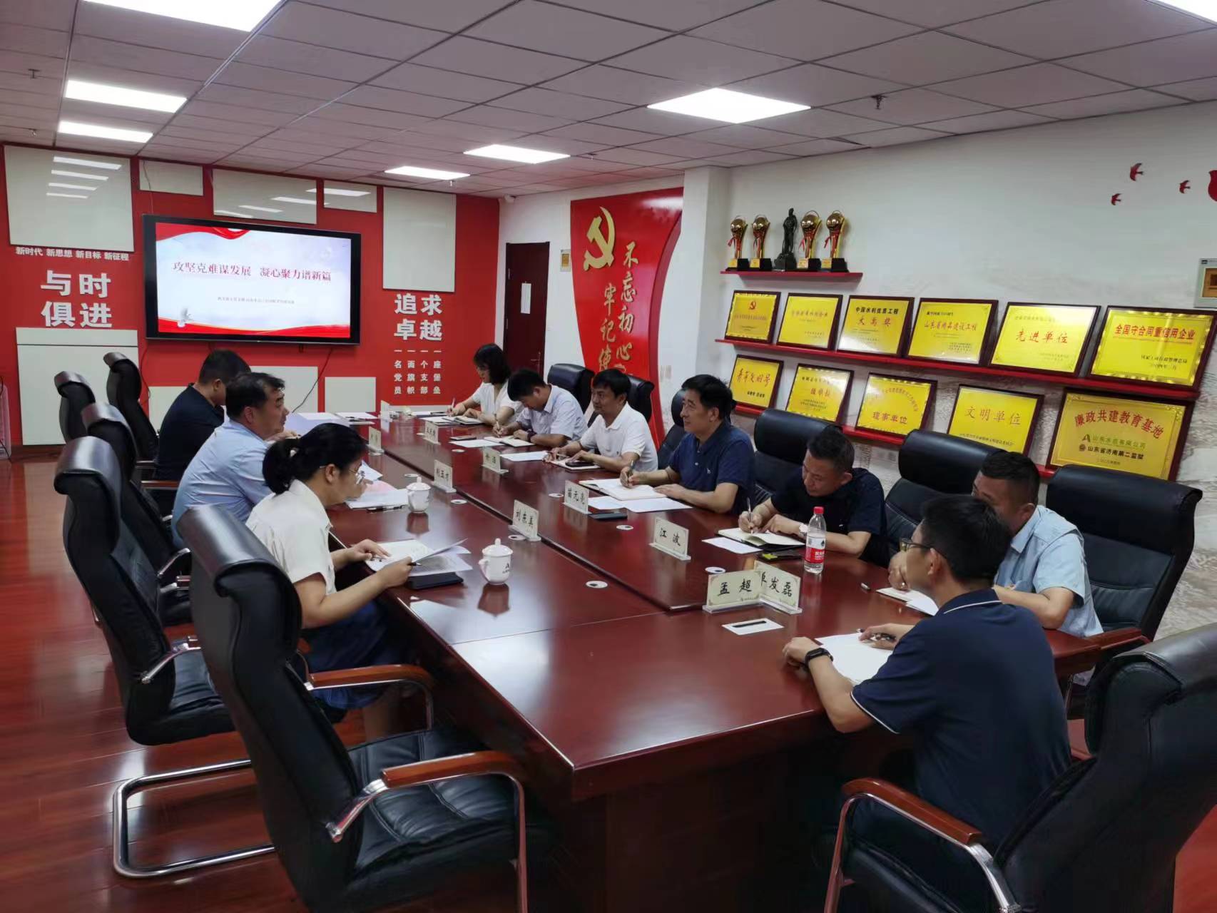 6月19日,路桥股份公司总经理助理、安全总监荆玉才一行到访,代表山东高速路桥集团股份有限公司机关第五党支部与山东水总第三分公司党支部进行联学共建,开展“攻坚克难谋发展 凝心聚力谱新篇”主题党日活动,公司科技创新发展部相关人员列席参加。