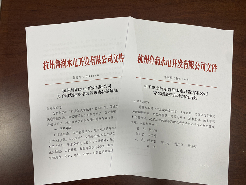 为贯彻公司“产业发展提效年”活动方案,切实增强员工的节约意识,杭州鲁润公司制定了《降本增效管理办法》,并成立了降本增效管理小组。管理办法从办公用品使用、公务招待费用、水电使用等方面做了相关要求。同时,管理小组将不定期对职工宿舍、办公室进行检查,并将结果进行通报。